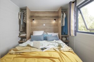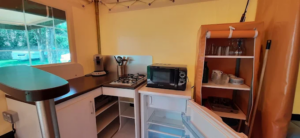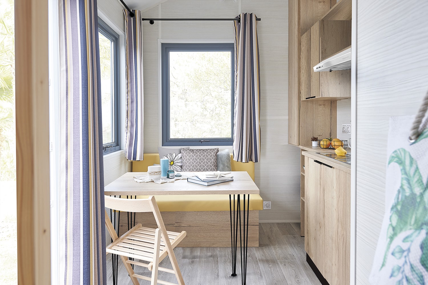 Cette structure de 20 m² alliant confort et fonctionnalité est tout à fait adaptée à une famille de 5 personnes (6 personnes à la demande) disposant d’une terrasse bois.